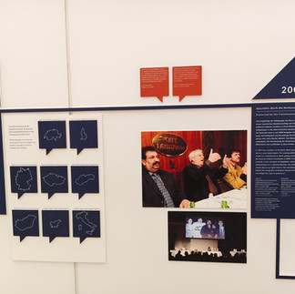 Izložba u auditoriju Parlamenta, kurirana od sveuč.-prof. Jürgena Pirkera, vodi posjetitelje kroz središnja područja narodnih grup: jezik, obrazovanje, kultura, prava i zajednička povijest.